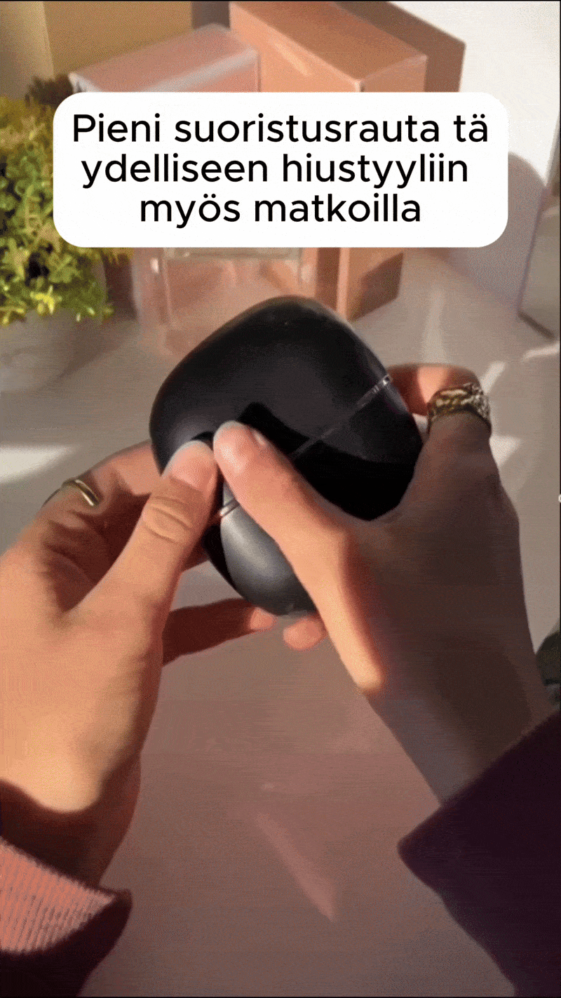 Huomaamaton, ylellinen ja ergonominen muotoilu sopii kämmenellesi – täydellinen laukkuun ja saat virheettömät hiukset koko päiväksi.